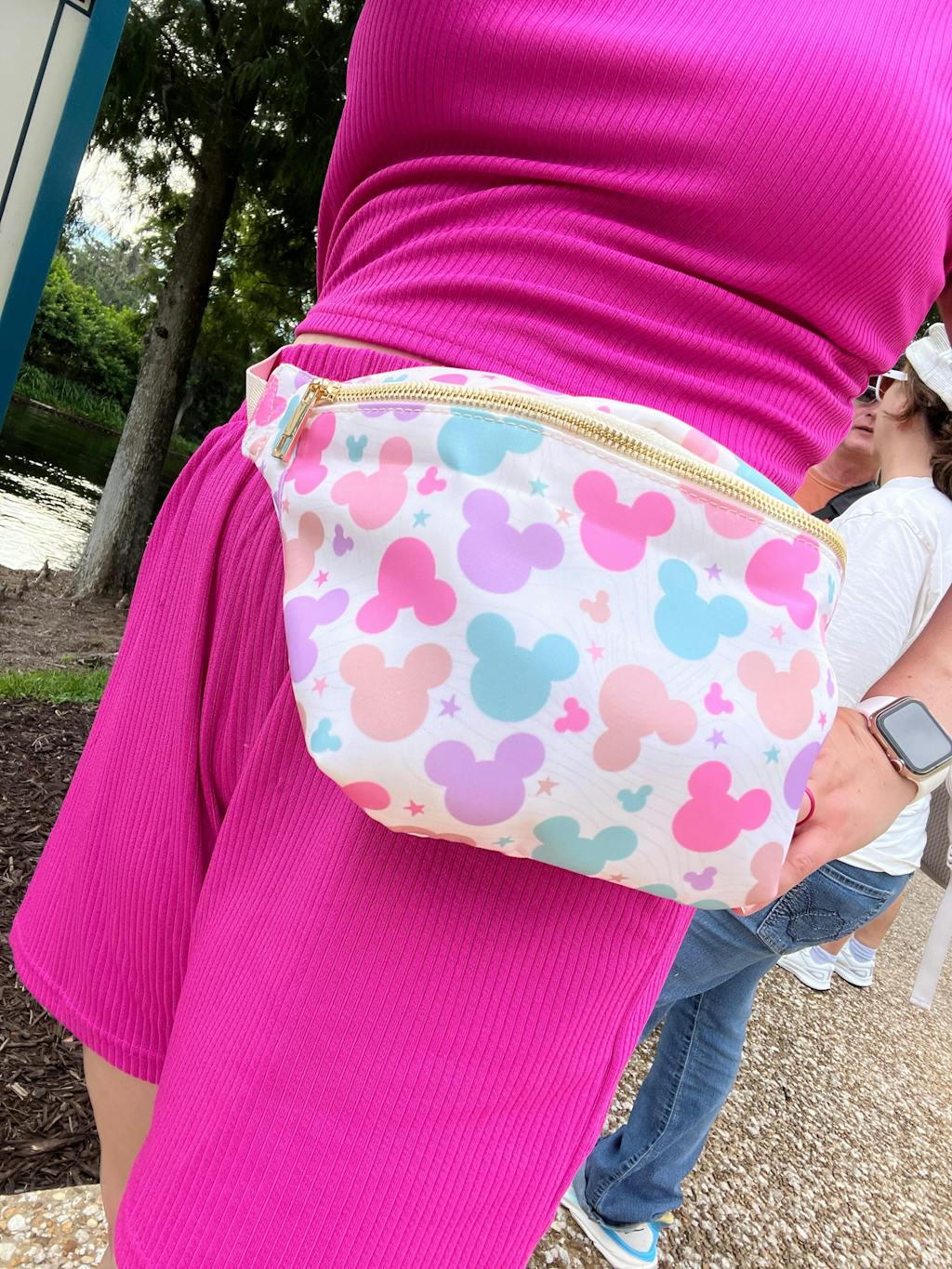 Our Magic Mouse Jumbo Belt Bag is finally in stock—and it’s every bit as fun as you imagined. Made from durable ivory nylon and printed with pastel Mickey heads in pink, purple, teal, and peach, this oversized fanny pack is a must-have for park days, errands, and everyday magic.