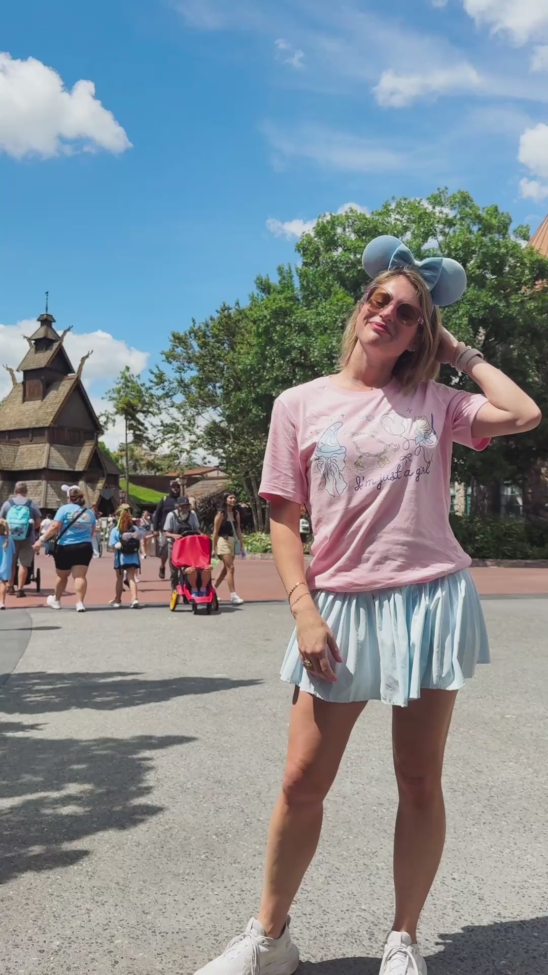 Our Just a Girl T-Shirt is soft, sweet, and full of Disney-inspired details — from a sorcerer’s hat with a bow to a balloon, charm bracelet, and everyone’s favorite pineapple treat (with a bow, of course). Printed on a light pink Bella+Canvas unisex tee, it’s the perfect mix of playful and polished.