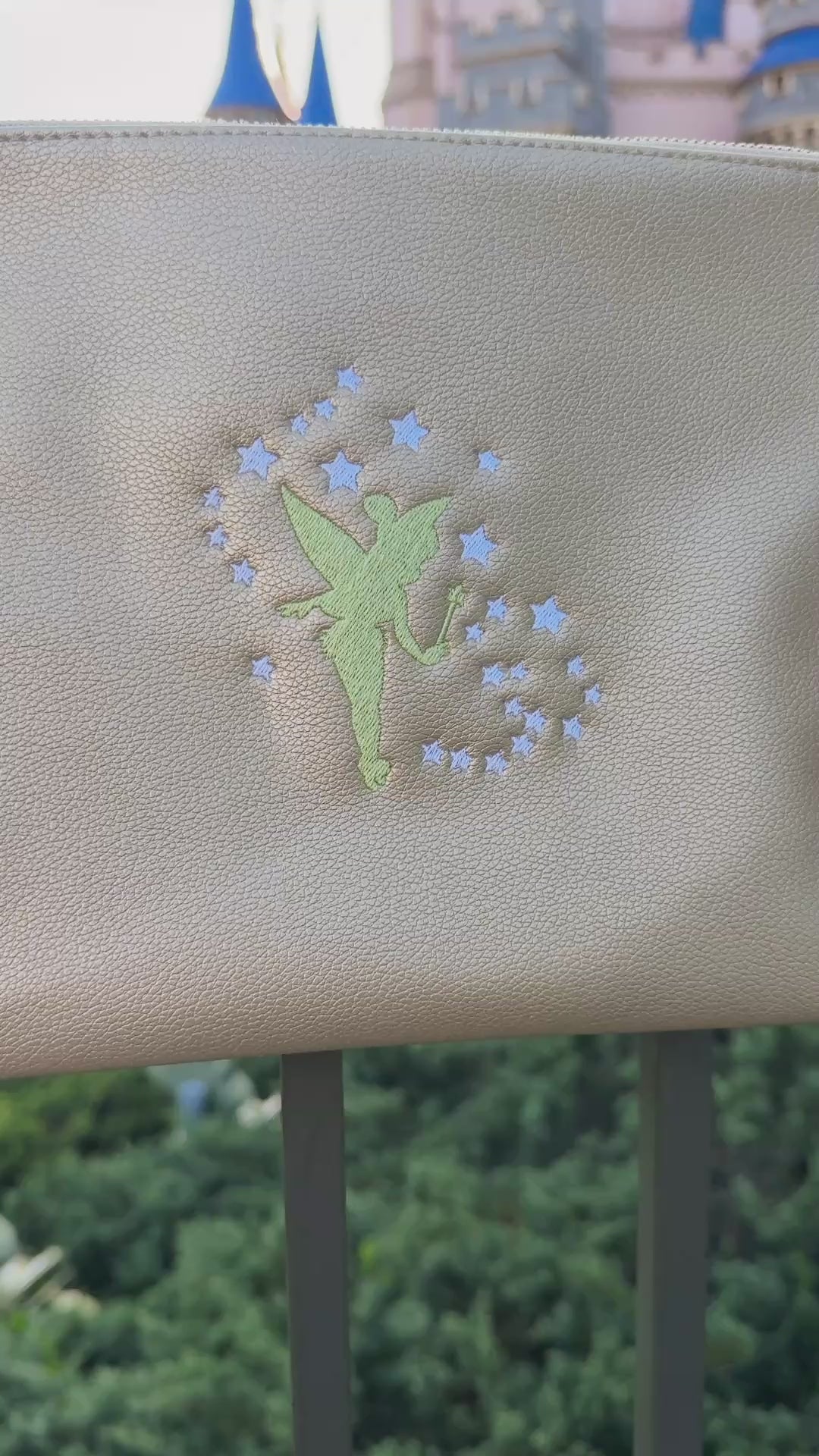 Sprinkle a little magic into your everyday essentials with this enchanting Pixie Dust Zipper Pouch! Beautifully embroidered with the mischievous fairy herself and twinkling stars, this gold pouch is perfect for storing your pixie dust, makeup, or other treasures. A touch of Neverland wherever you go!